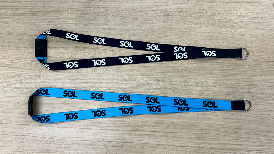 形に残る記念品を作りたいという想いから、全社員アンケートを実施。その結果、「日常業務で使用するもの」を希望する声が多かったため、社員なら誰でも使うネックストラップを刷新することにしました。表面は汚れが目立ちにくい黒、裏面はコーポレートカラーの青を採用し、首や肩への負担軽減のためストラップ幅を現行のものから拡張するなど、細部までこだわりました。