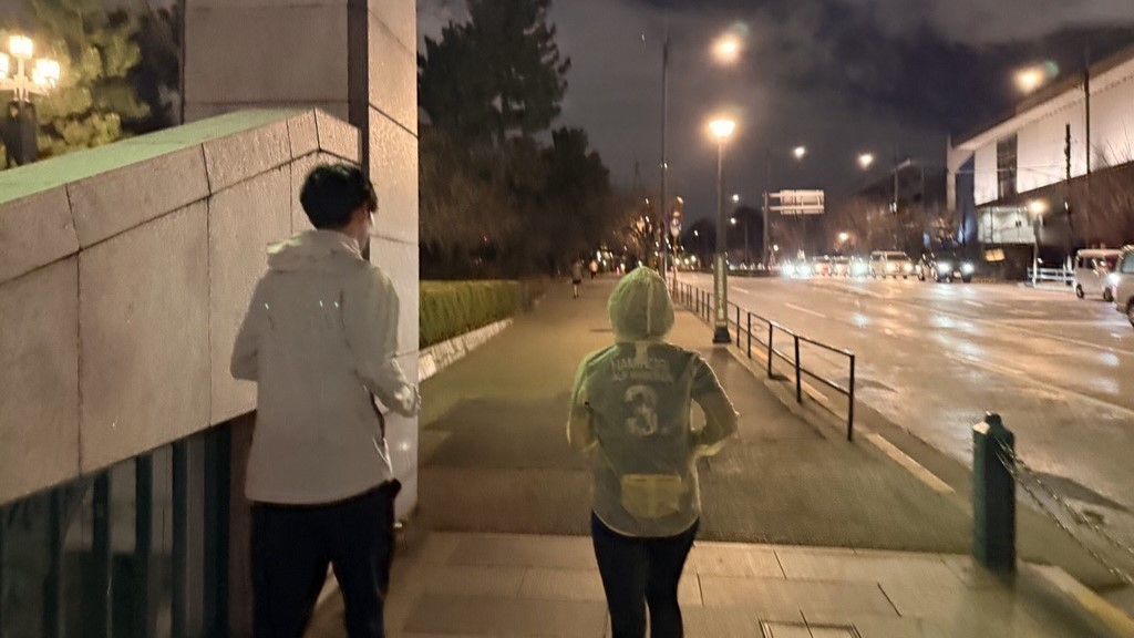 残り2km地点の桜田門前から眺める丸の内方面の夜景は格別です。都心ならではの景観を楽しみながら走れるのは、皇居ランの大きな魅力の一つです。